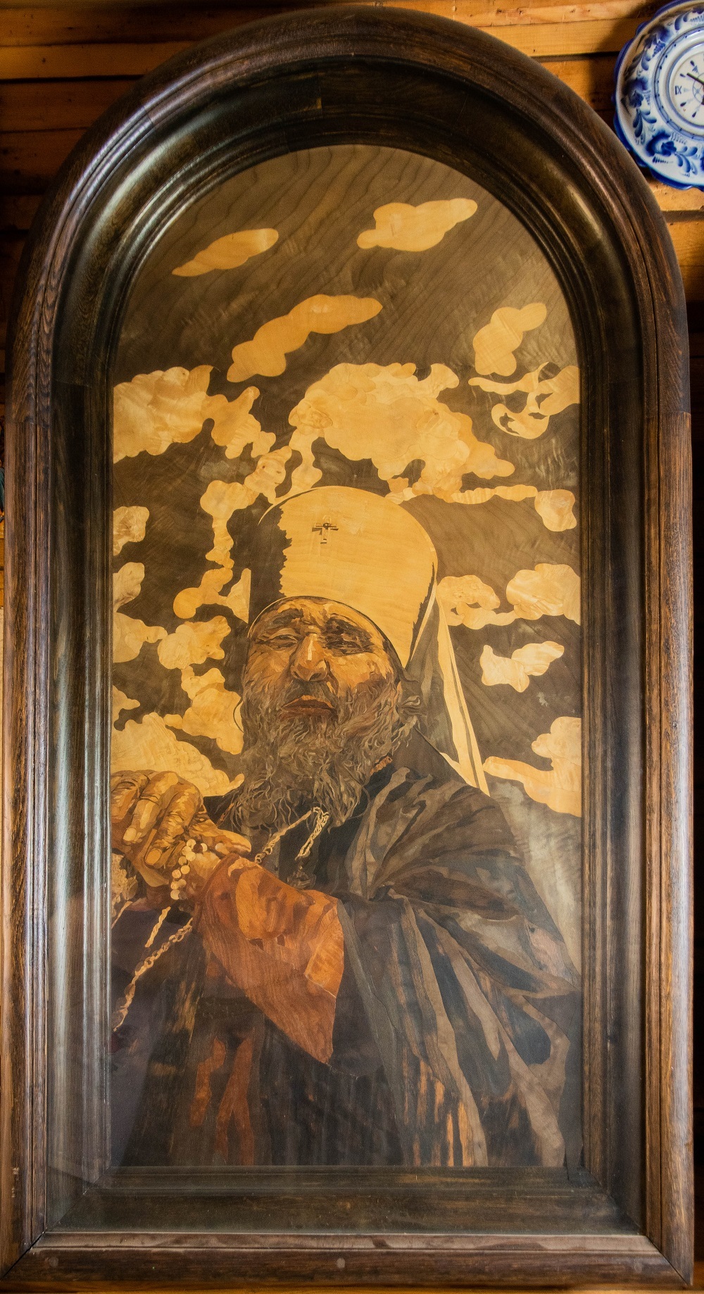 Анатолий Кашка был глубоко признателен и благодарен владыке Гедеону за его благословение и изготовил его портрет в необычайно трудоемкой технике маркетри, с любовью изображая каждый волосок бороды с помощью мельчайших кусочков цветной древесины.